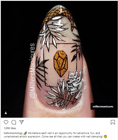 Look at Maniology, a nail stamping company that motivates women to embrace their creativity and express themselves through nail art. In the post above, they elicit positive emotions within their followers by grabbing their attention, instilling a sense of awe at the artwork created with nail stamps, and inspiring women to embrace adventure and unleash their own creativity.